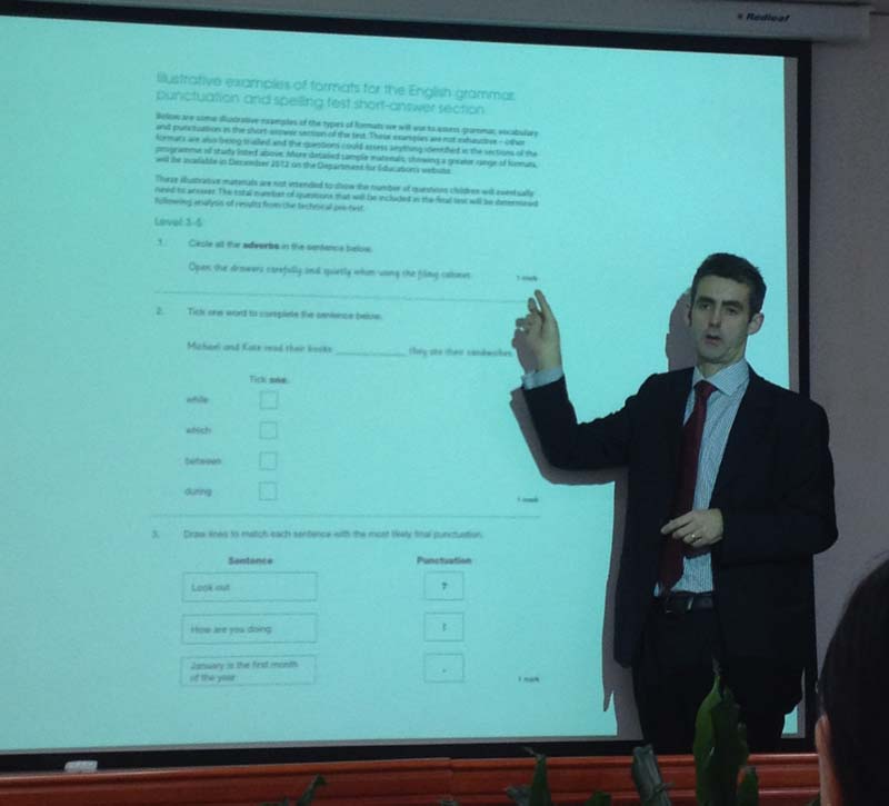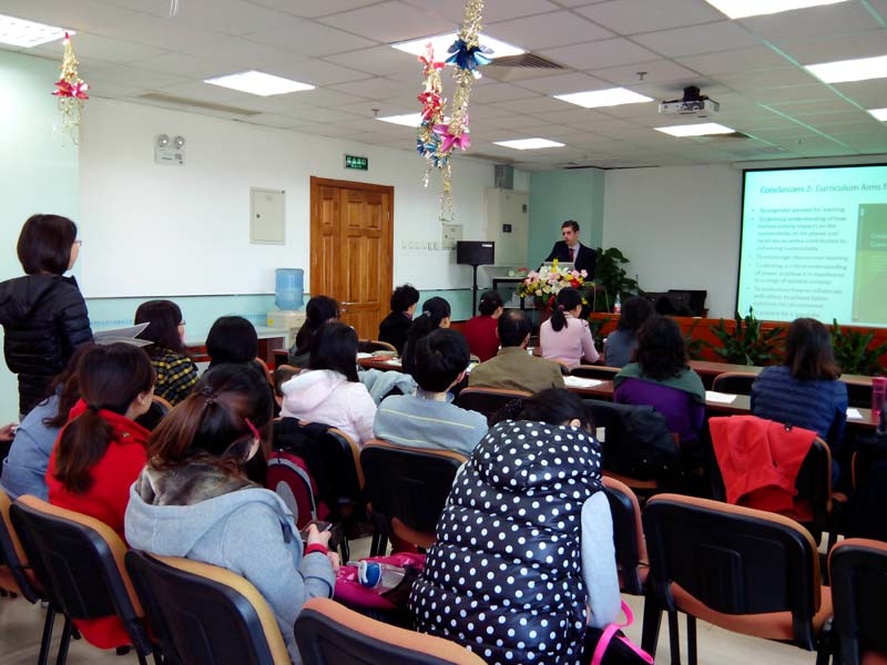 2013年11月4日上午,英国伦敦大学教育学院Dominic Wyse教授来91大神讲座,并与91大神师生进行交流。Dominic Wyse教授是幼儿教育与小学教育方面的专家,并涉猎英语语言教育、课程与教法等多个领域,著作颇丰、很有见地。他此次讲座的题目是“Teaching English, Language and Literacy”。基于读写能力的多样性、语言的多样性、以及多种语言环境的存在等,他提出了语言教育理论中的一个新概念——multivernacularism,强调不同“语境”在语言教育,尤其是英语教育中作用重大。他还指出语言教育应符合一定的语言原则,如:就能够理解的意义进行交流是语言发展的驱动力;分析理解“实际使用中的语言”是教师与学生适当知识的基础;经历和反思阅读与写作的过程是加强教与学的重要资源等等。Dominic Wyse教授最后总结到:英语教学必须要适应不同的语境;阅读与写作的教学方法要根据语境来选择;教师与学生在有效教育中的重要作用不可小觑。