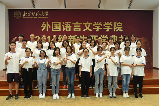 2019年9月5日14时,外文学院2019级新生开学典礼暨入学教育在英东学术会堂二层演讲厅隆重举行。学院党委书记刘娟,院长苗兴伟,副院长陈则航、于晖,英文系主任王楠,日文系主任王志松,俄文系副主任张勃诺,学院MIT翻译教育中心主任王广州,外事主任、2019级博士班班主任李中山,英文系教师胡笑然,学院专职辅导员杨晨、毛燕、2019级本科生班主任林杨、梁栋出席开学典礼,外文学院2019级全体新生参加。典礼由学院团委书记张新颖主持。