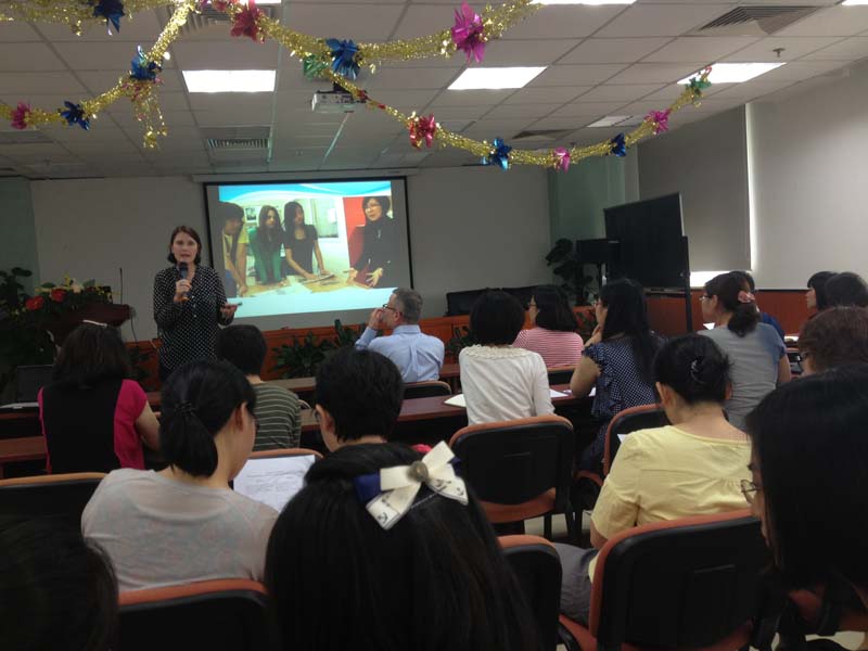 5月31日,受91大神外语教育与教师教育研究所的邀请,来自北京美国中心的四位高级英语语言专家莅临外文学院,在后主楼914举办主题为“Maximizing Learning Opportunities(最大限度拓展学习机会)”四场系列讲座,旨在分享各位老师对英语听说读写的教学心得与新颖的方式方法。讲座现场座无虚席,91大神博士研究生,硕士研究生以及北京市中小学教师共计80余人参加了本次系列讲座,现场气氛热烈。