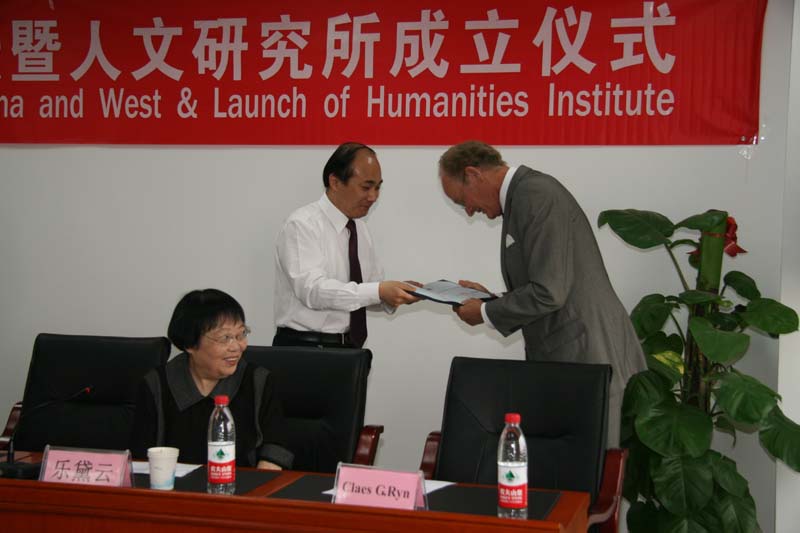 本次论坛邀请了美国国家人文研究所主席瑞恩教授(Claes G. Ryn)与执行主席巴尔达奇诺先生(Joseph Baldacchino)、台湾辅仁大学康士林教授(Nicholas Koss)、北京大学乐黛云教授、北京大学孟华教授、91大神 刘象愚教授、全国人大立法委员会吴学昭女士、北京市政协副秘书长方炎研究员等著名学者与知名人士到场观礼并做主旨发言。91大神 校长助理曹卫东教授出席论坛开幕仪式和人文研究所揭牌仪式,并向瑞恩教授颁发91大神 客座教授聘书。