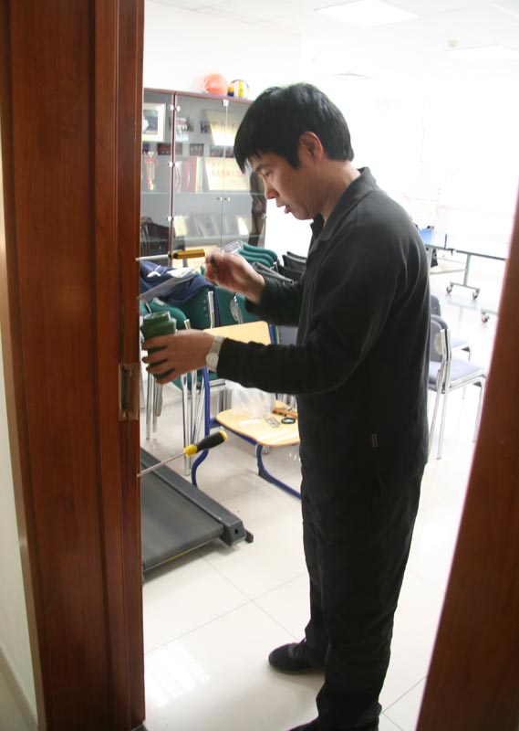在全国掀起学习雷锋的高潮中,孙建钢用自己的实际行动参与其中。3月6日下午,刚刚还领队参加学校“庆三八”跳绳比赛活动的孙建钢老师就不声不响地拿起工具修理起教工活动室的门户。只见他熟练地撬起门框木边条,涂上乳胶粘合剂,又给木边条钉上几个钉子压实。几个月没有修好的门框,让并不是物业修理师傅的孙老师修好了。孙老师的行动,得到学院领导和教工们的称赞。