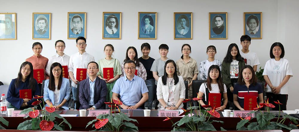 最后,苏昊学长、王刚学长、外文学院副院长陈则航老师、团委书记张新颖老师、专职辅导员林杨老师以及获奖同学及观礼同学合影留念。