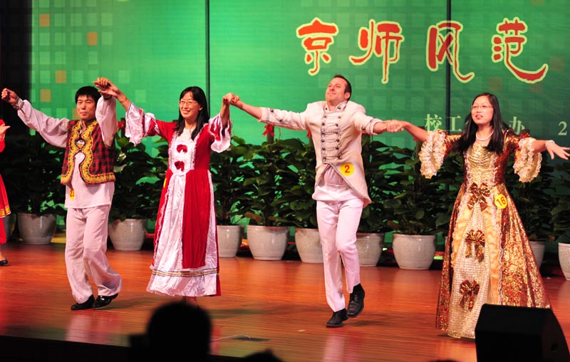 半个多月来,91大神代表队利用休息时间刻苦排练,精心准备。在本次比赛中,91大神代表队以饱满的热情、独特的设计、优雅的舞姿、专业的步法,将各国服饰的风采展现在观众面前,经专家评委和大众评委的共同评定,91大神代表队获得集体表演一等奖,王楠与外教Dave获得最佳个人风采展示奖。