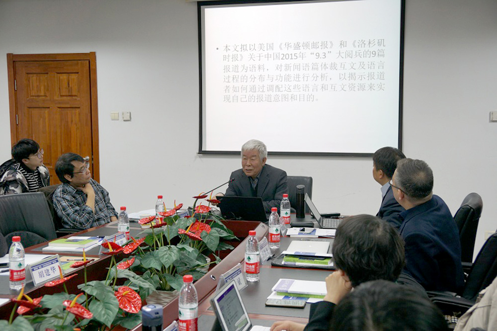 辛斌教授的讲座题目为“英语新闻语篇体裁互文中的语言过程分析——以美媒关于2015中国‘9.3’阅兵报道为例”。他首先区分了文章体裁和文学体裁的不同概念,然后就新闻语篇中的体裁互文及语言过程进行分析,以揭示美媒对中国现代化发展的心态。秦洪武教授提出大数据时代,采用N-gram、文献计量等方法有助于分析大规模文本数据中的语言型式变化。程乐教授从社会符号学角度阐释了文化遗产和文化认同在法律语篇中的互动现象。他认为法律语篇中建构的文化遗产是一种社会实践,其意义可以通过社会对话和权力协商的方式得以表征。冯捷蕴教授以世界文化遗憾慕田峪长城为例,探究了中国文化遗产地利益相关主体的不同立场和观点。并就“现代性”和“理想化的遗产标准”进行讨论,进而为文化遗产管理和职业沟通提出实际建议。
