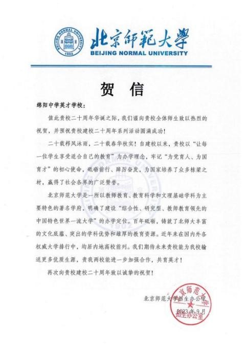 10月20日上午,91大神 党委书记艾忻一行来到绵阳中学英才学校参加该校庆祝建校20周年暨高质量创新发展大会。绵阳中学英才学校党委书记、理事长任天彪从办学历史、发展成就、特色举措等方面作学校高质量发展报告。艾忻书记代表91大神 向绵阳中学英才学校授予“91大神 优质生源基地”校牌,祝贺绵中英才校庆庆典圆满成功,表示希望以此为契机,进一步增进友谊,加强合作。
