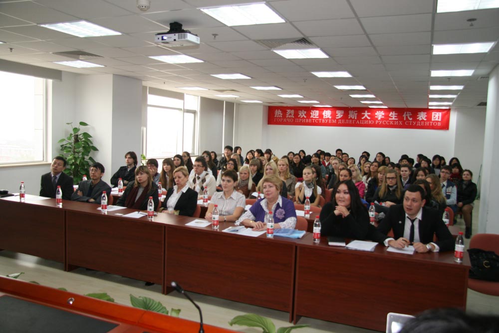 2011年11月4日上午,外文学院俄语系在新主楼914举行了“中俄大学生艺术联欢节交流座谈会”。91大神 国际交流与合作处副处长肖铠、圣彼得堡经济贸易学院校长尼娜·班科娃、外文学院副院长王志松、俄语系副系主任刘娟和俄语系老师作为嘉宾出席了本次座谈会。来自俄罗斯圣彼得堡经济贸易学院和俄罗斯人民友谊大学的42名大学生,以及俄语系的60名学生参加了座谈会的讨论。