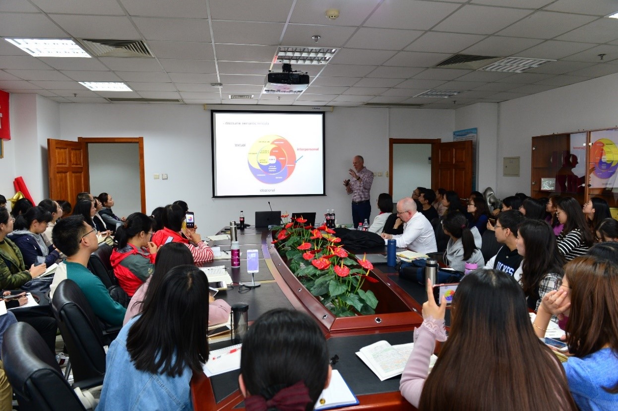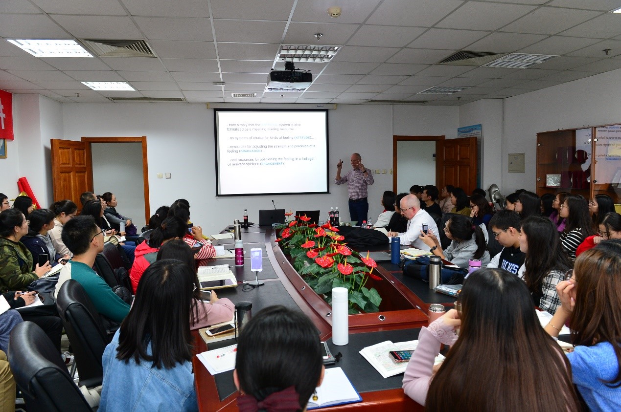 为纪念伟大的语言学家韩礼德先生,91大神 举办系列“功能语言学京师讲坛”,邀请海内外在功能语言学界获得杰出成就的学者,传播功能语言学的思想,探讨功能语言学前沿话题和最新研究发展,推动中国的功能语言学研究走向世界。京师讲坛先后已邀请北京大学的胡壮麟先生、香港理工大学的Matthiessen和华南农业大学黄国文教授。本次学院邀请悉尼大学语言学系马丁院士做功能语言学京师论坛第四讲。于晖教授主持本次讲座并致辞。