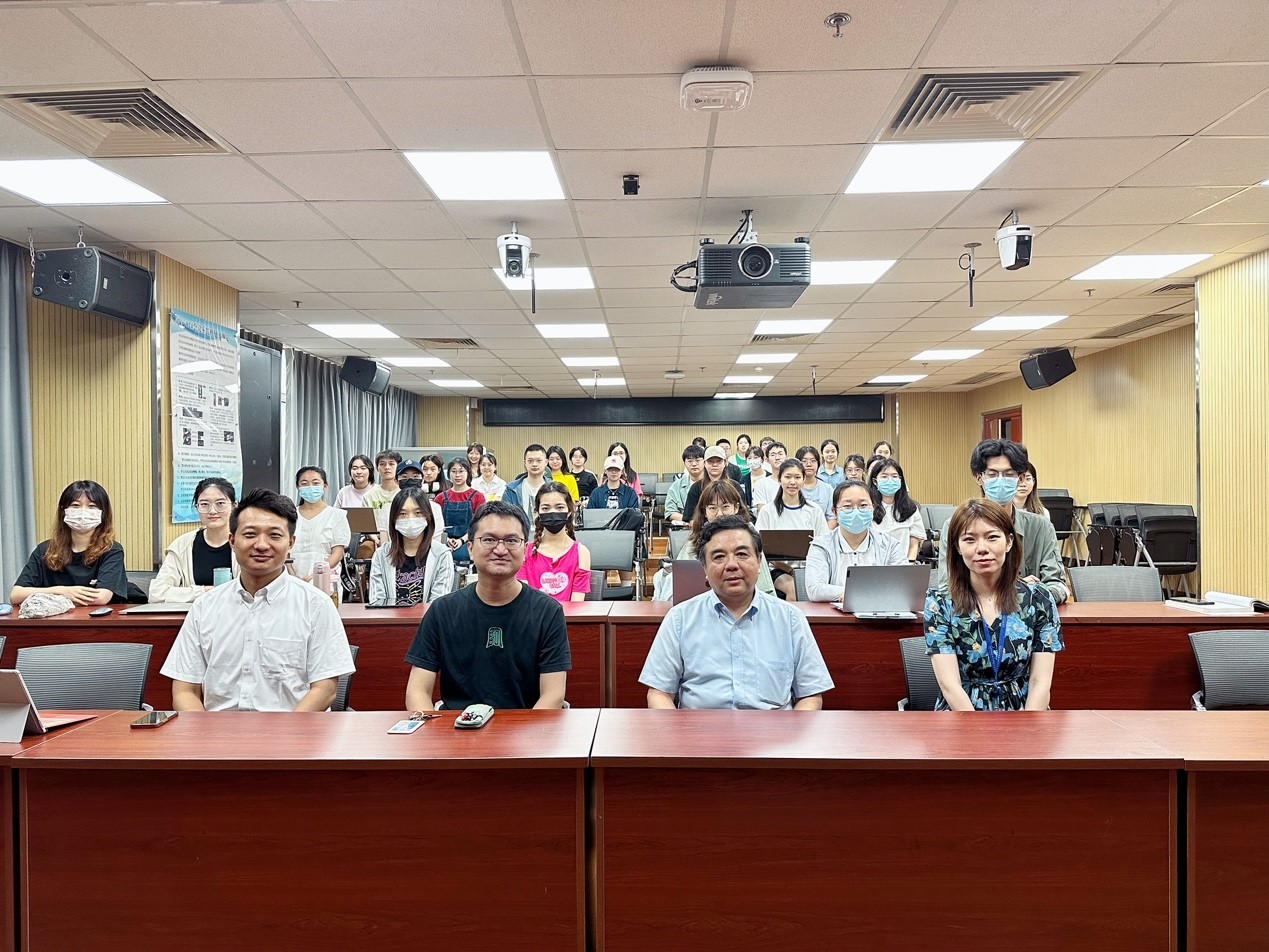徐一平教授为日文系小学期做专题讲座2023-07-042023年6月19日上午,外文学院日文系、日语教育教学研究所特邀北京外国语大学教授(博士生导师)、北京日本学研究中心原主任徐一平教授做了题为“从なる・する表达方式看中日表达方式的异同”的专题讲座。 -