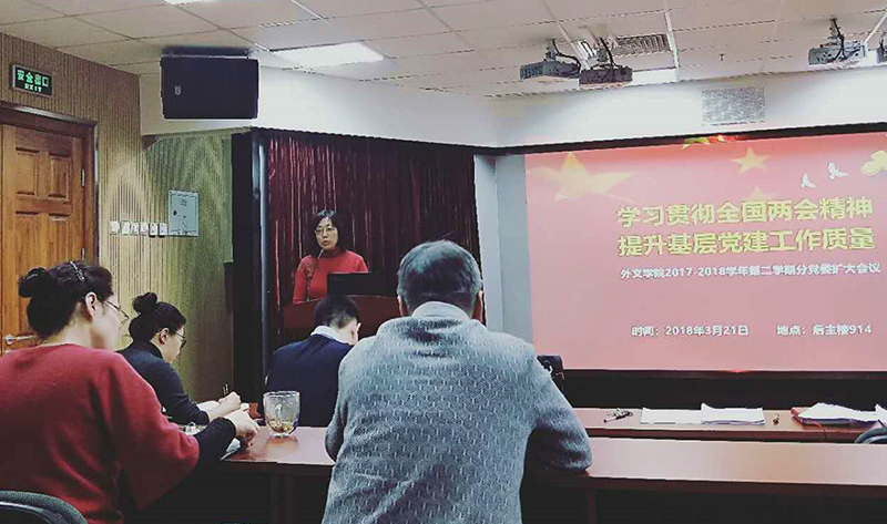 外文学院召开2017-2018学年第二学期分党委扩大会议2018-03-273月21日下午3点半,2017-2018学年第二学期学院分党委扩大会议于后主楼914会议室成功召开 -