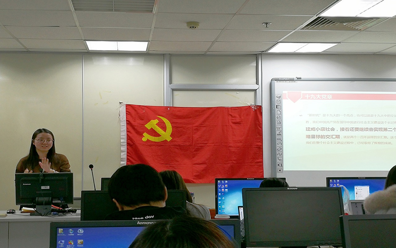 2016级专硕第三党支部成功举办学习十九大新党章活动2017-12-252017年12月20日晚7时,外文学院2016级专硕第三党支部在后主楼912教室开展了学习党章活动,学习了十九大通过的新党章中的十大重要改动。学习活动由党支部书记姚秋昕主持。 -