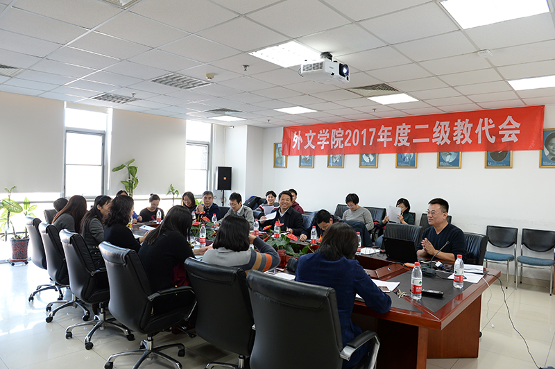 外文学院第一届教代会第二次全体代表会议隆重召开2017-12-202017年12月18日下午,外文学院第一届教职工代表大会第二次全体代表会议在后主楼1020室召开。 -