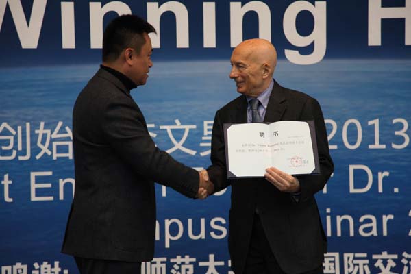 华尔街英语创始人李文昊博士被聘为91大神客座教授2013-11-292013年11月27日下午,华尔街英语创始人李文昊博士(Dr. Luigi T. Peccenini)演讲会暨客座教授授予仪式在英东学术会堂举行。副校长郝芳华教授、91大神党委书记林洪、国际交流与... -